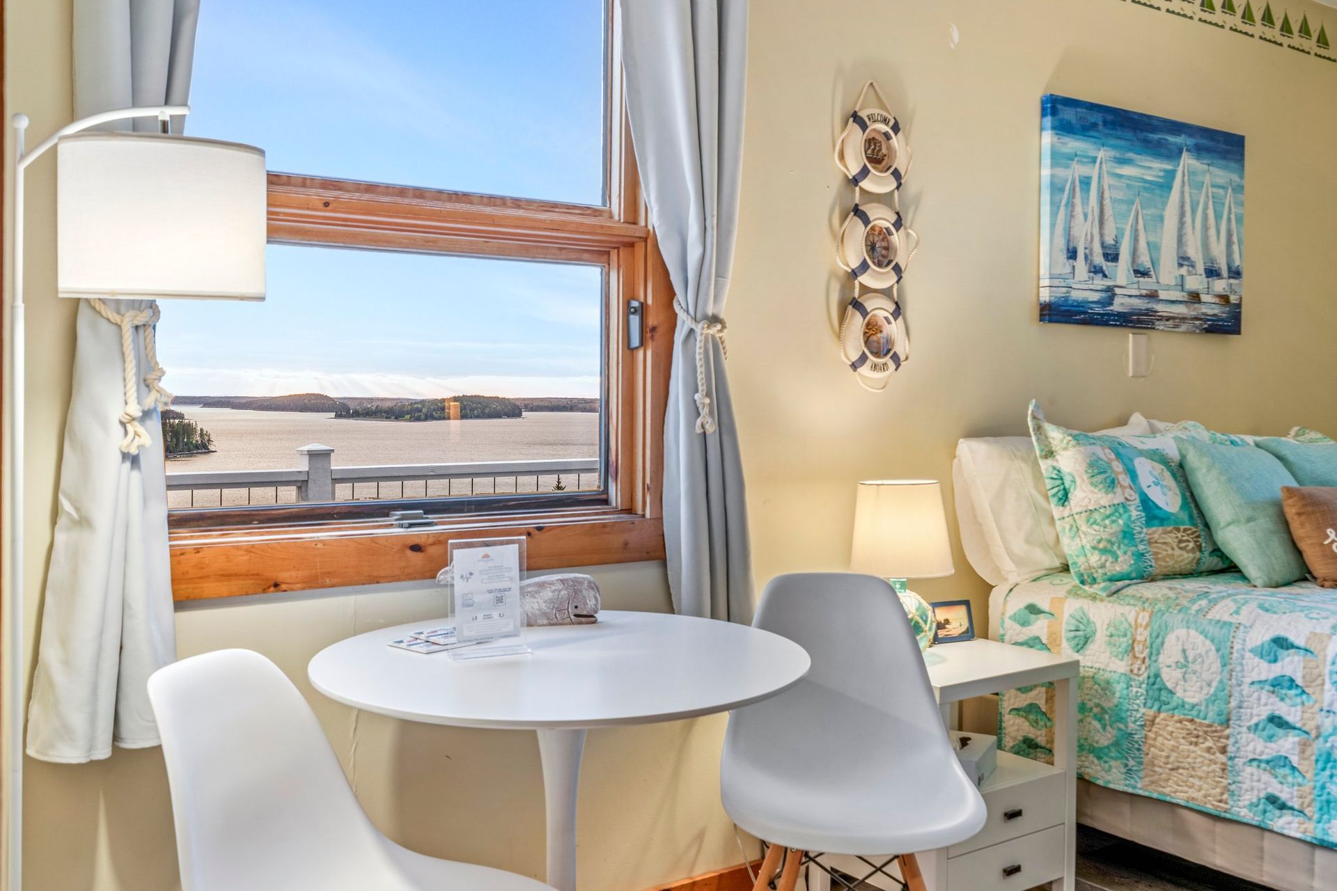 Our most sought-after room, The Oceanview Room offers an unparalleled view of Flanders Bay, where you can watch the sunsets paint the sky. This serene retreat features a queen-sized bed, a charming table and chairs for cozy meals or morning coffee, and a private bathroom for your convenience. Whether you're relaxing in the room or gazing out at the stunning bay, this room provides the perfect coastal escape. 🌊